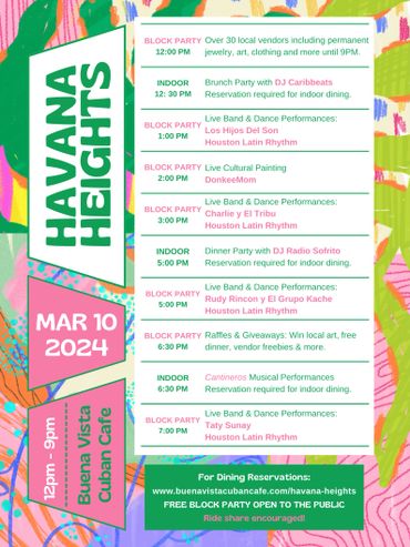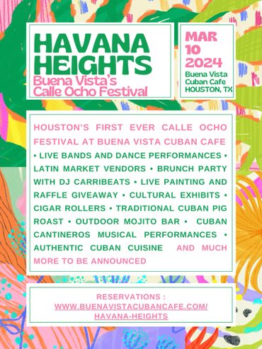 Welcome to Havana Heights, where the vibrant spirit of Miami's Calle Ocho Festival meets the heart of Houston. Our story is one of cultural celebration, bringing the lively festivities that honor Cuban and Latin traditions to the diverse melting pot of our city.